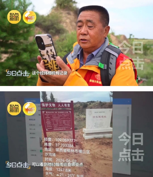 如今,每次巡查,郭治兵都要把长城周围的垃圾捡拾一遍。巡查完了还要认真填写巡查日记,在巡视现场拍照,将巡查结果通过手机APP及时上报到横山区长城安全巡查与监管平台。