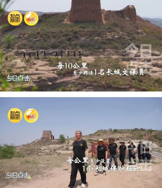 2017年,榆林市建立长城保护“四个一”长效工作机制,即长城沿线县市区每个月至少巡查1次、每个乡镇设立一个长城工作站、每10公里至少聘请一名长城保护员、每公里至少设置1个长城保护标识,持续加强长城保护工作。2024年起在“四个一”的基础上深化为“六个一”工作机制,新增了“建立一个长城重要点段信息监控平台,市政府每季度在长城沿线乡镇现场主持一次推进会”。目前,榆林市共聘用了长城文保员305人,通过提高补助待遇、表彰奖励、签订责任书等方式提高这些人的责任意识。