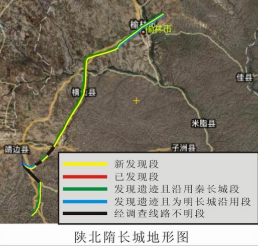 隋长城修建于开皇六年(公元586年),是隋朝为防御北方强敌突厥侵扰而修建的。榆林市隋长城分布在神木市、靖边县和定边县,隋长城由墙体和单体建筑组成,墙体全长18.394千米,皆为堆土筑成,保存程度差;单体建筑共34座,为夯土筑成,多数坍塌呈圆形土包状。目前在榆林境内遗存不显,踪迹难寻。