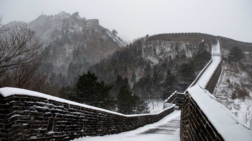 11月7日,位于天津市蓟州区的黄崖关长城迎来降雪,雪后黄崖关长城银装素裹,颇有北国之壮美。