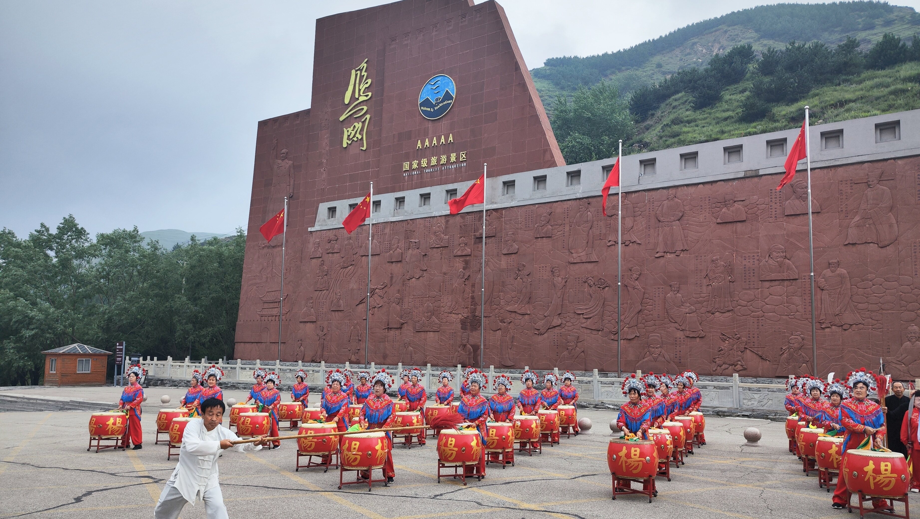 初秋时节,走进位于山西省忻州市代县的雁门关景区,青砖古墙镌刻着千年风霜,明月楼前杨家将雕像英姿凛然。